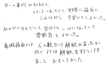 参加者の感想(箱庭心理セラピスト養成講座)